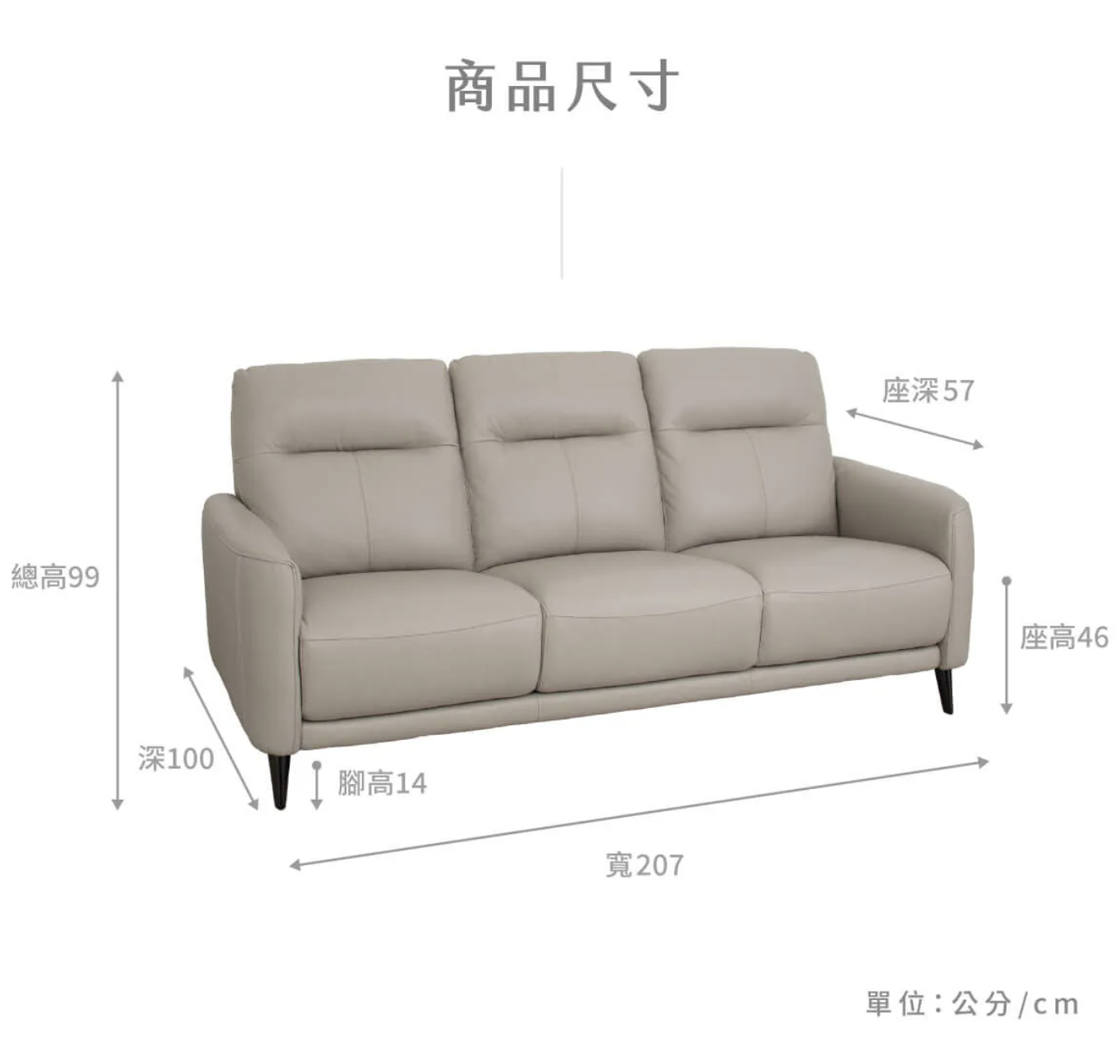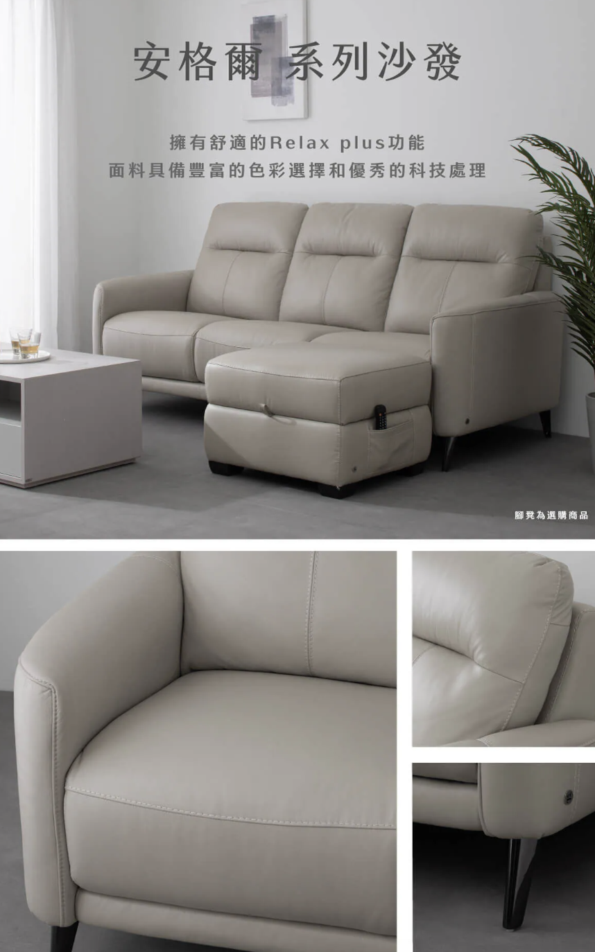 ● 此安格爾系列沙發三人座示意圖片為牛皮款,