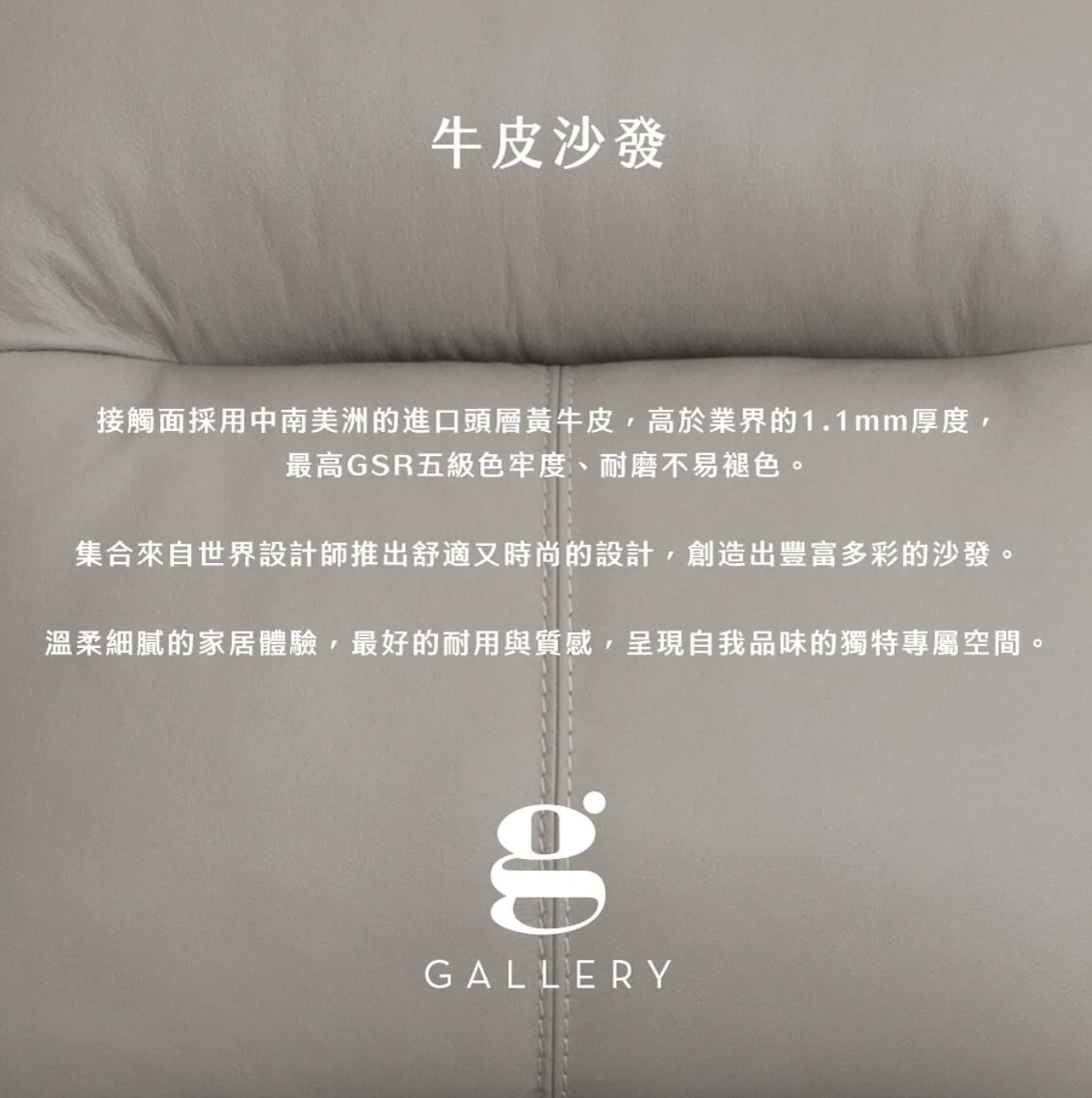 此款沙發亦可客製「全牛皮款」及「寵物友善布」款,客製詳情請洽門市人員。