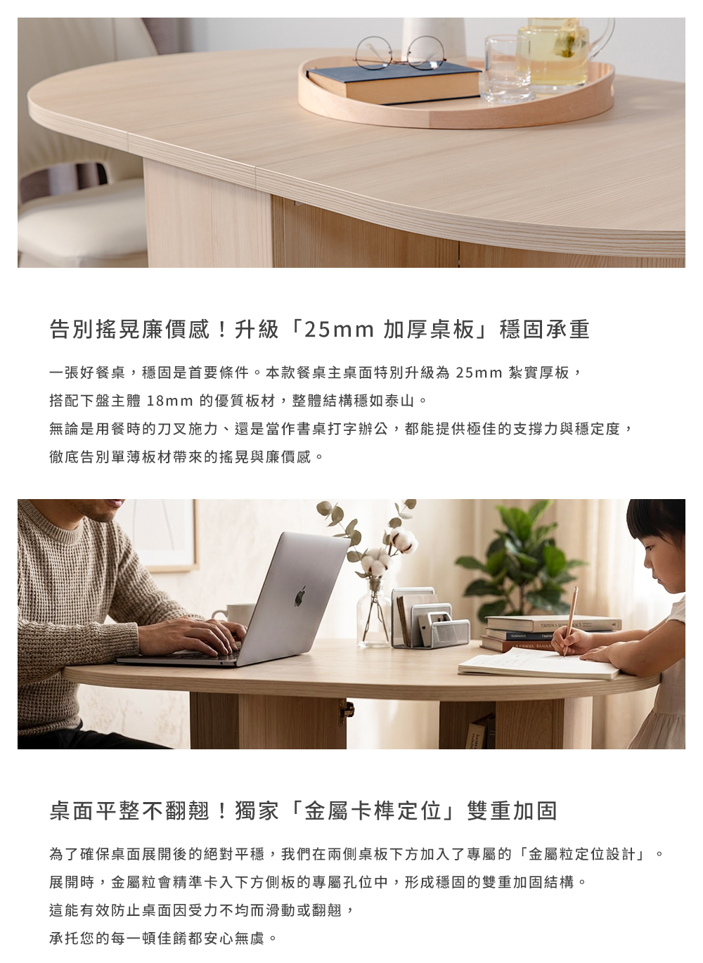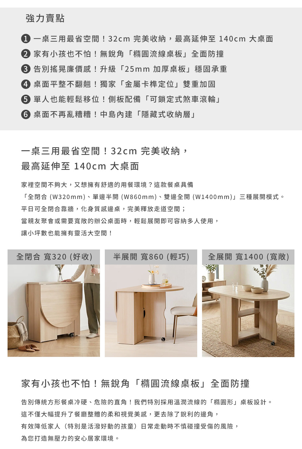 • 無銳角橢圓流線桌板設計,大幅降低碰撞風險,家有孩童更安心。