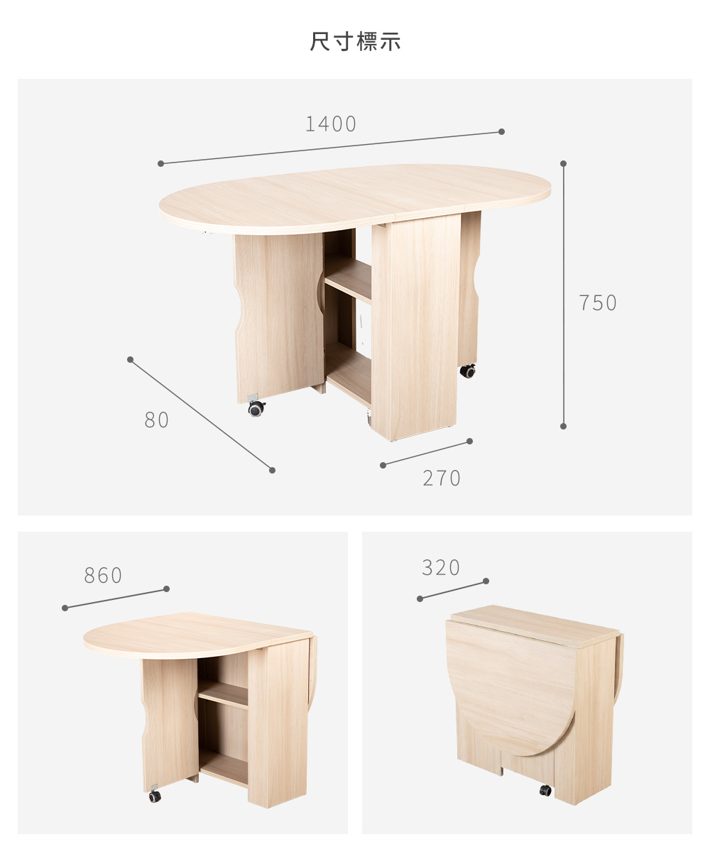 • 激省空間一桌三用!32cm完美收納,展開達140cm大桌面。