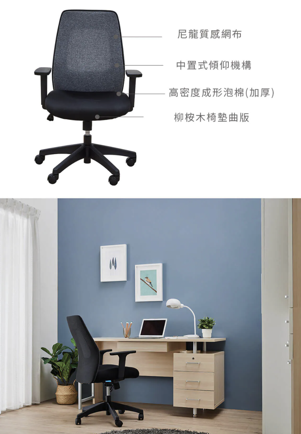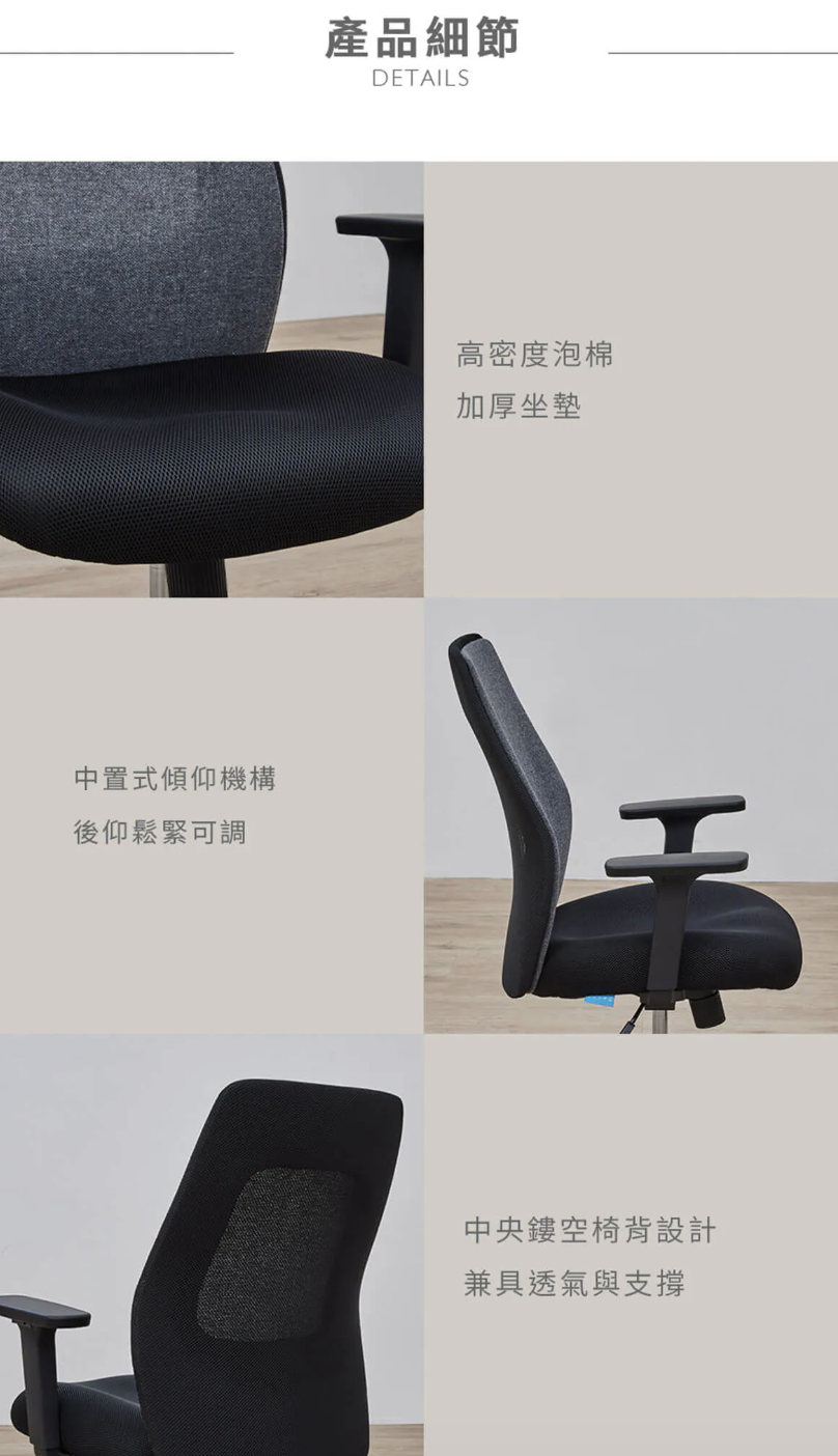 •椅背中央簍空設計,兼具透氣與支撐
