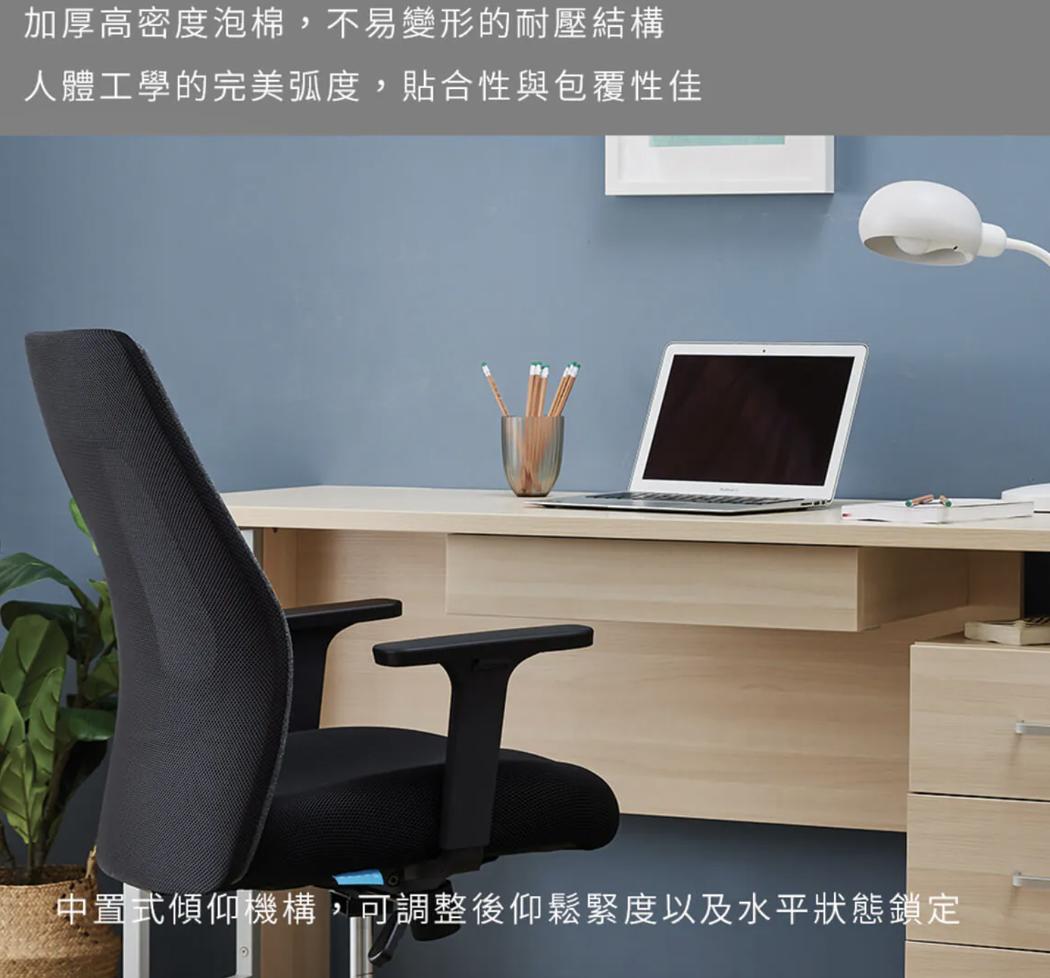 •中置式傾仰機構,可調整後仰鬆緊度。