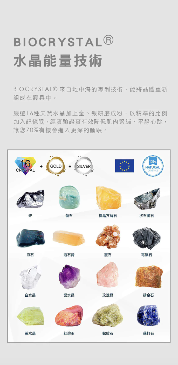 •獨家水晶棉核心:極致Q彈不悶熱 採用新型水晶棉材質,觸感如雲朵般Q彈,具備優異的感溫釋壓能力,並比傳統泡棉更透氣涼爽。