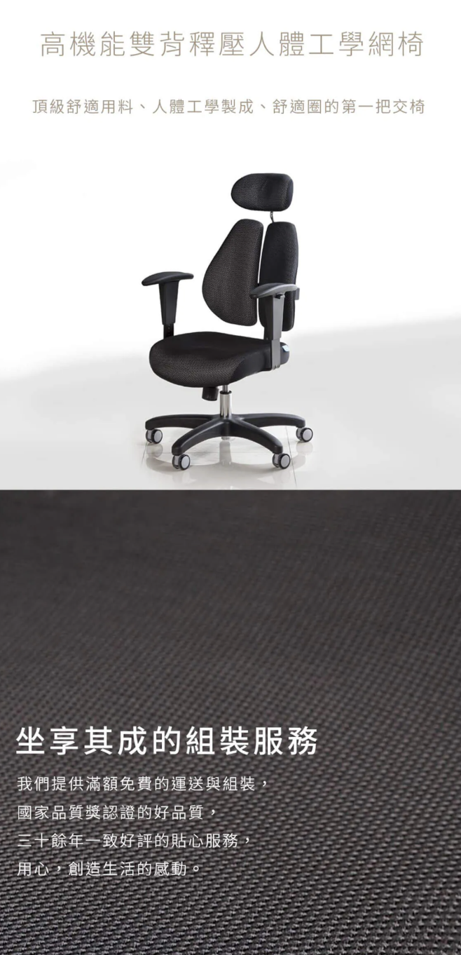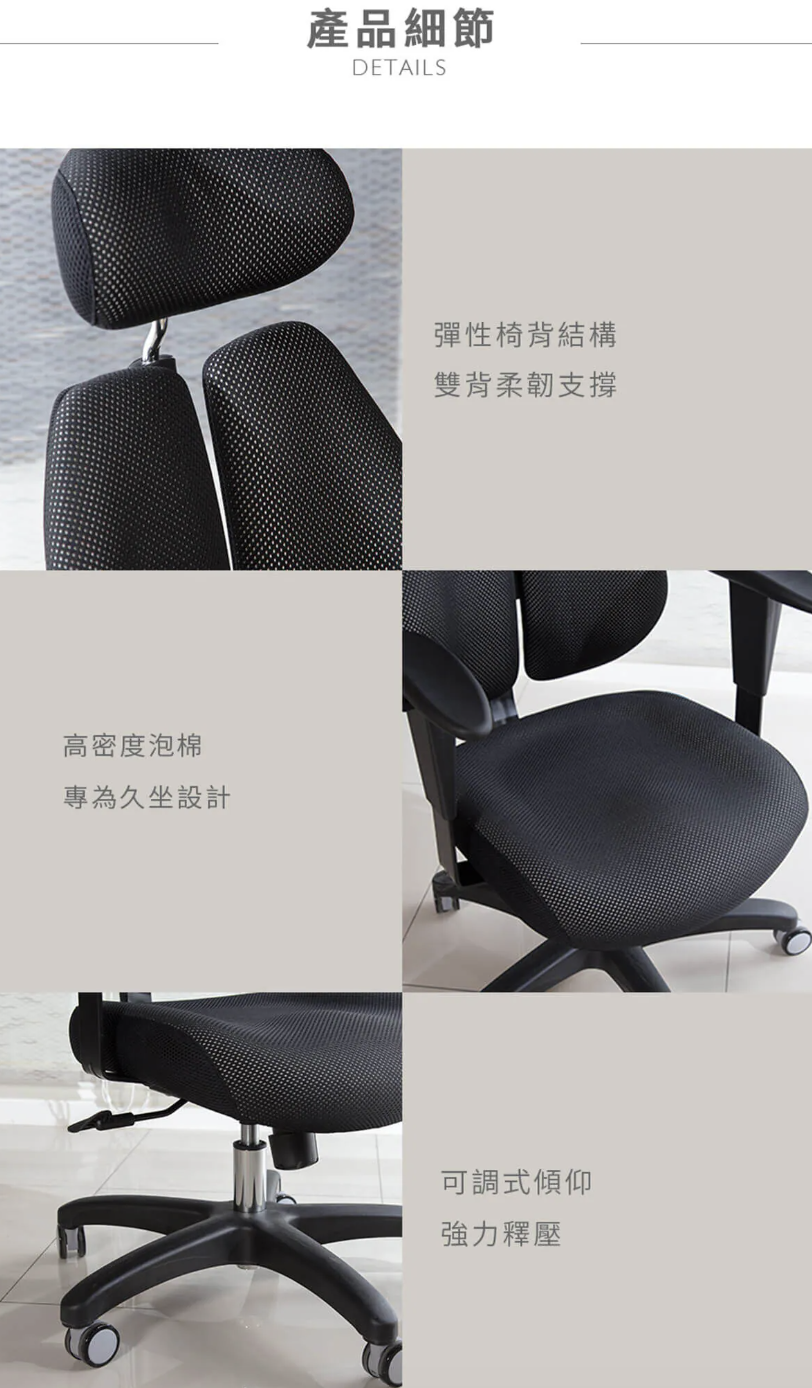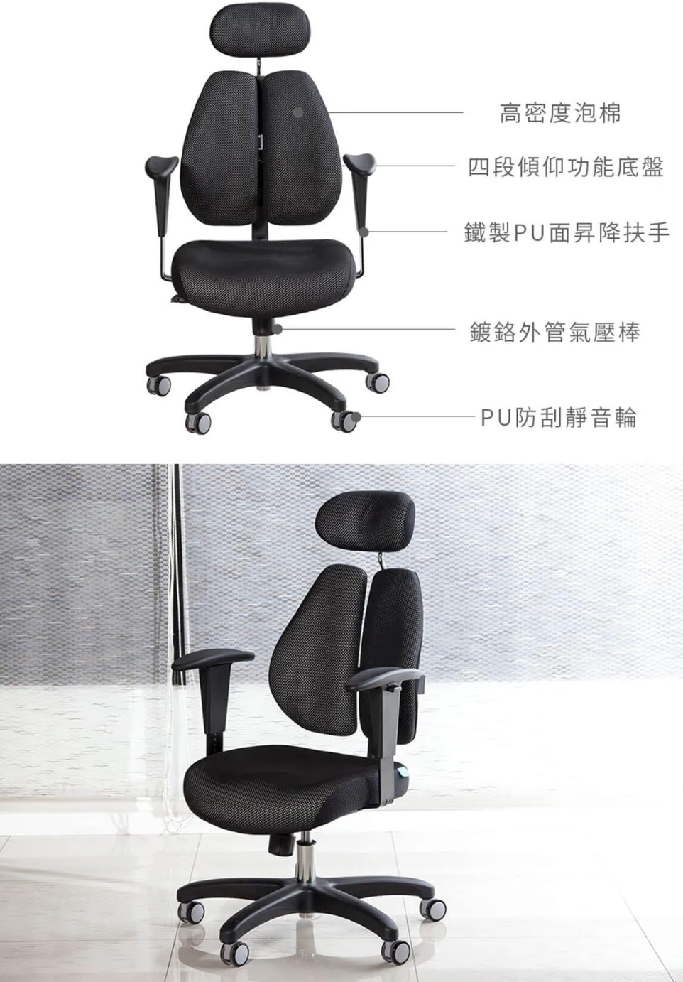•高機能雙背設計/3D頭靠枕,完整支撐頭背部曲線。