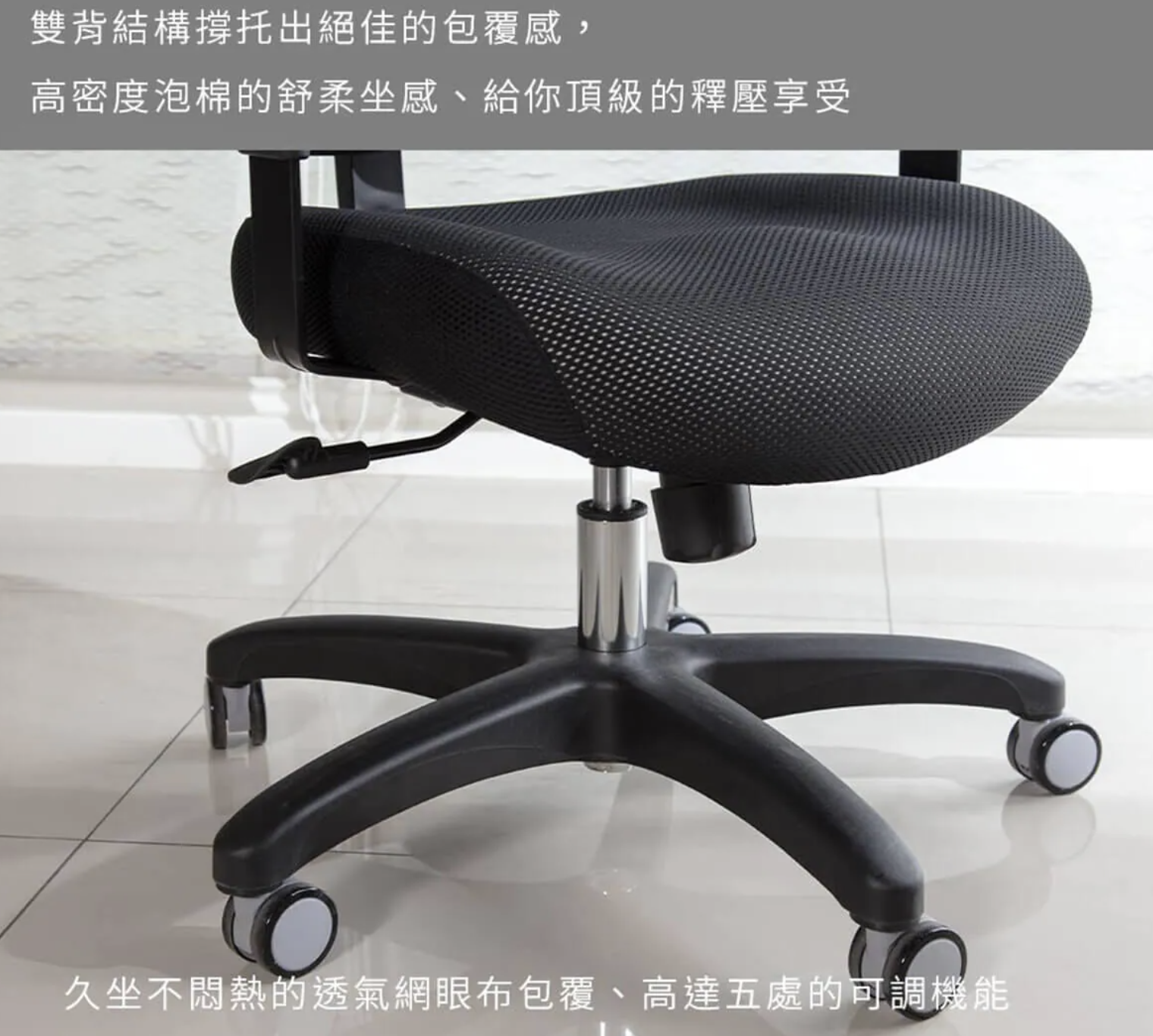 •全椅墊使用透氣網眼布包覆,透氣散熱快。