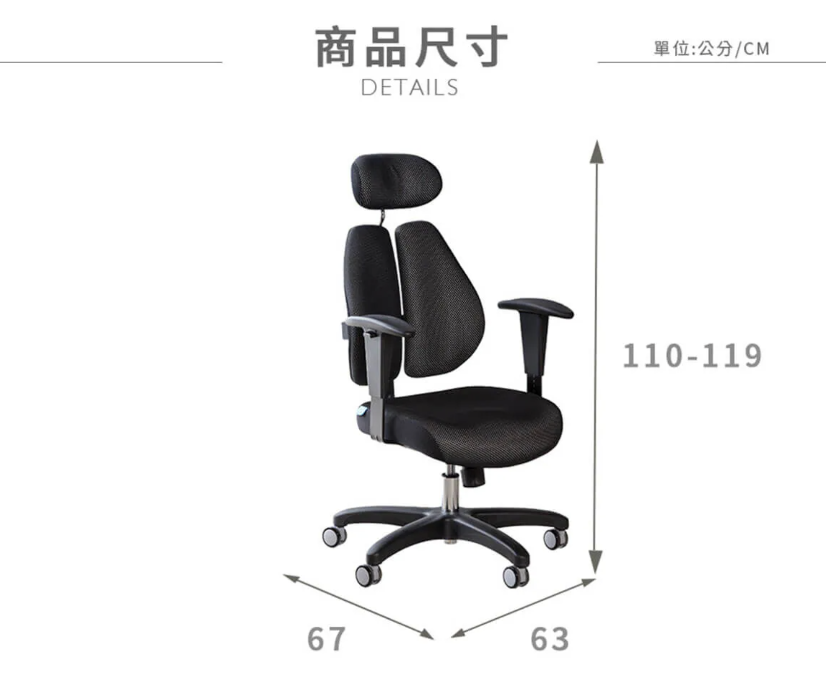 •可調性能:座高/扶手/頭枕/椅背/傾仰角度。