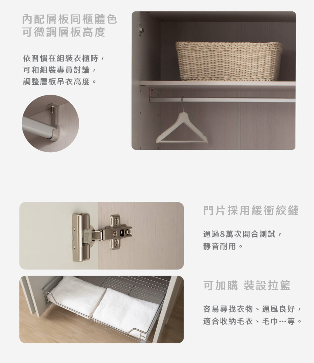 •系統化大容量分區收納,讓您的衣櫃保持井然有序;滿足不同家居簡約風格。