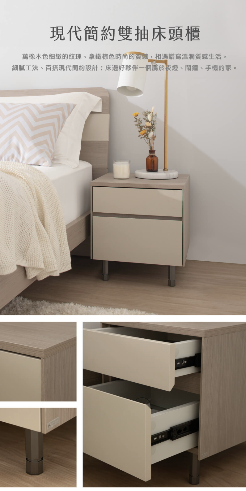 •採用三節式滑軌,抽屜關上時靜音不回彈,抽屜深度可完全拉開。