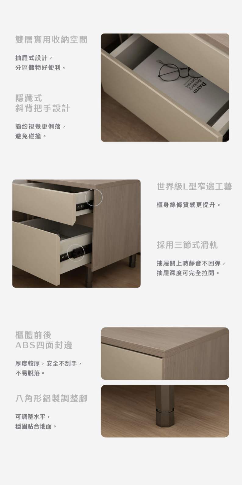 •櫃體前後ABS四面封邊,厚度較厚,安全不刮手,不易脫落。