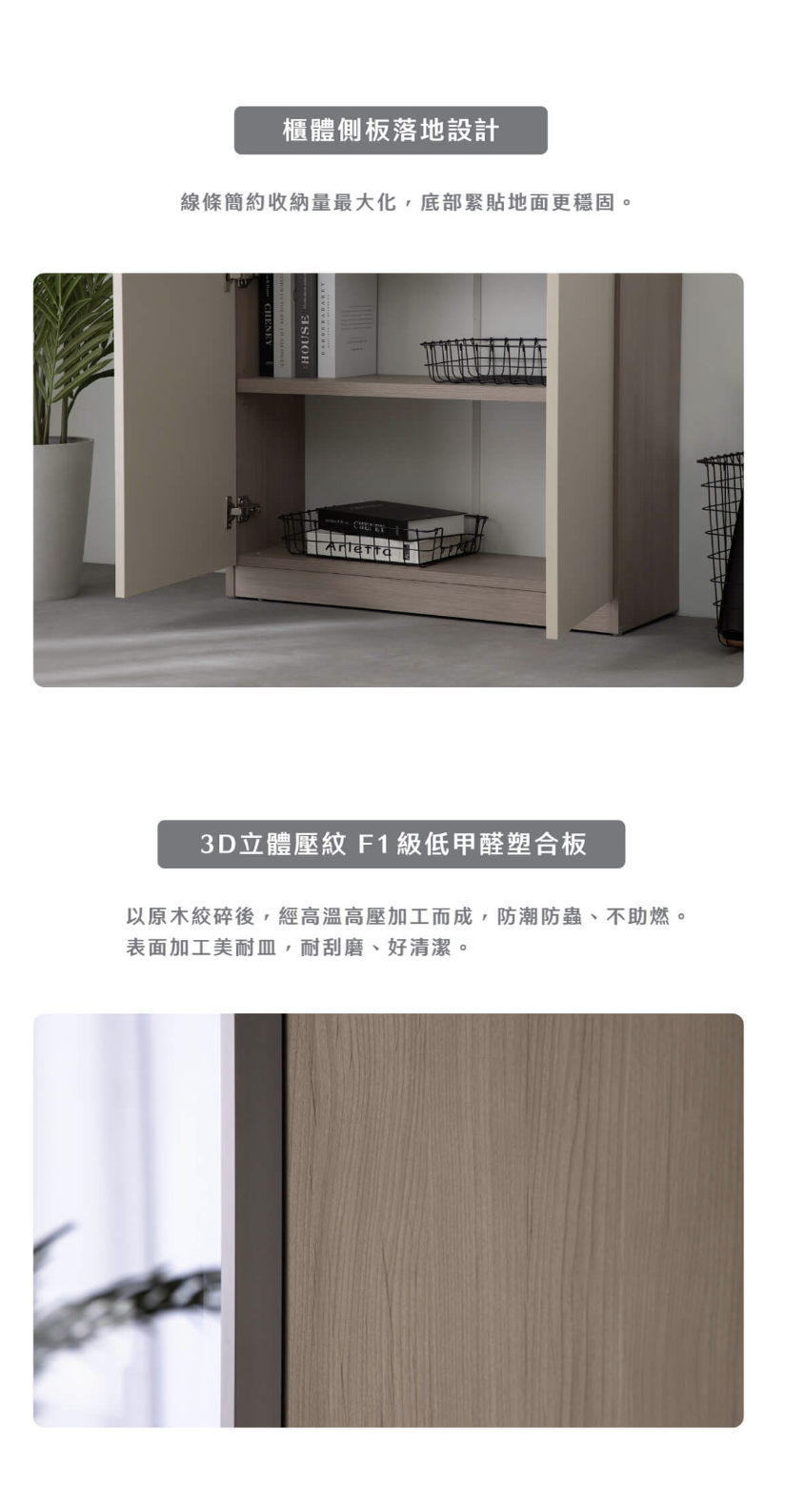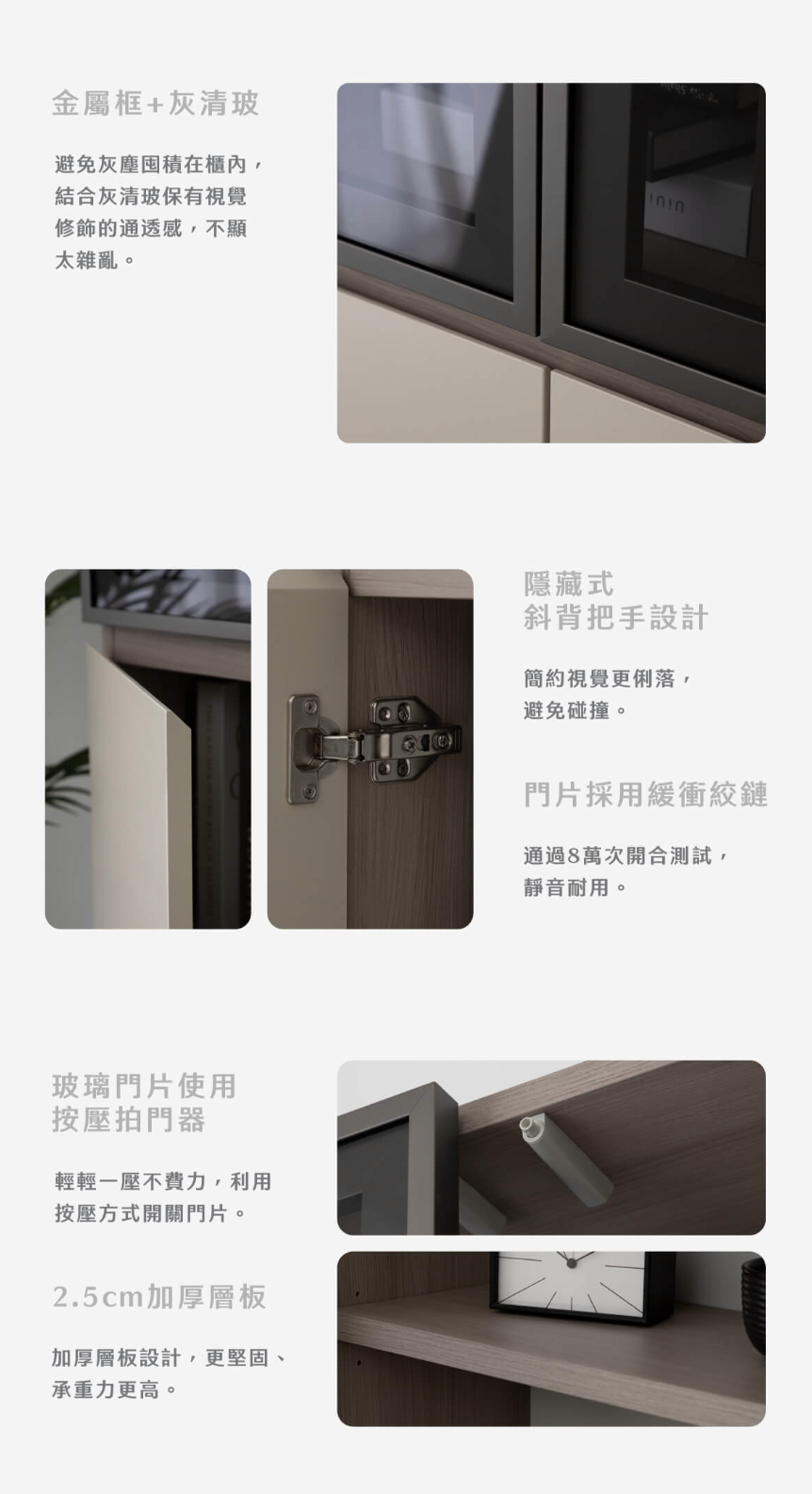 •門片採用緩衝絞鏈,通過8萬次開合測試,靜音耐用。