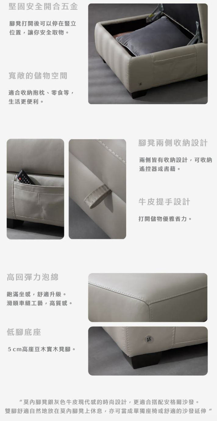 •雙腳舒適自然地放在莫內腳凳上休息,亦可當成單獨座椅或舒適的沙發延伸。