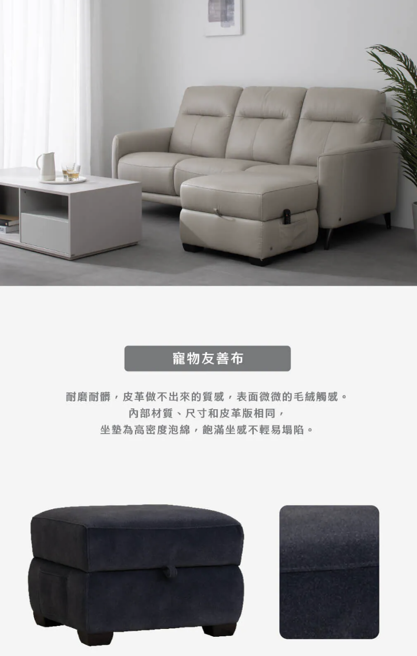 •莫內系列沙發腳凳,另有深藍色調「動物友善布料款」。