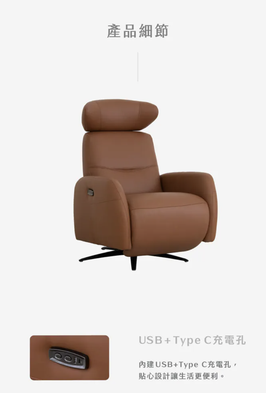 •沙發內建USB+Type C充電孔:貼心設計讓生活更便利。