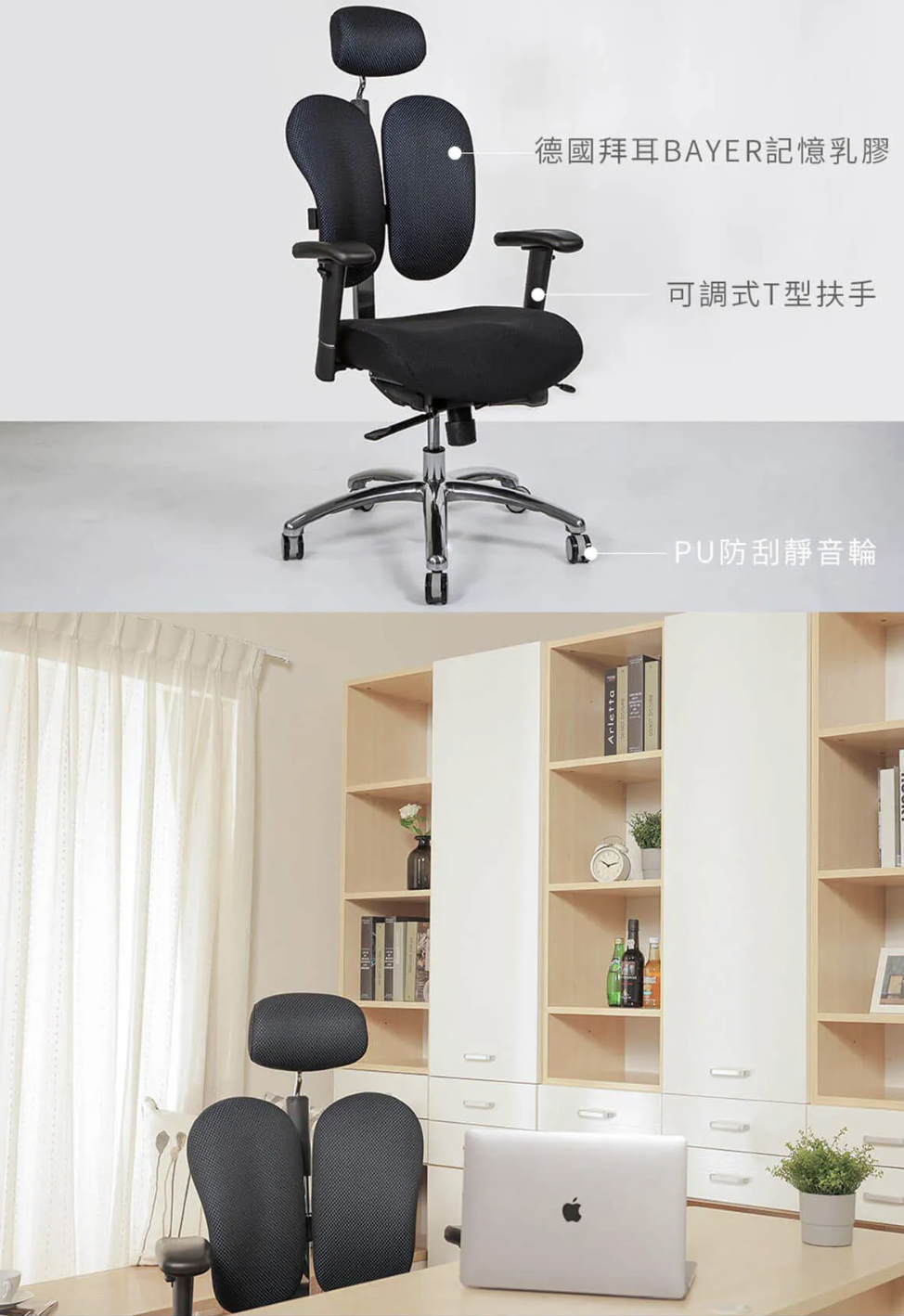 •高機能雙背設計/3D頭靠枕,完整支撐頭背部曲線