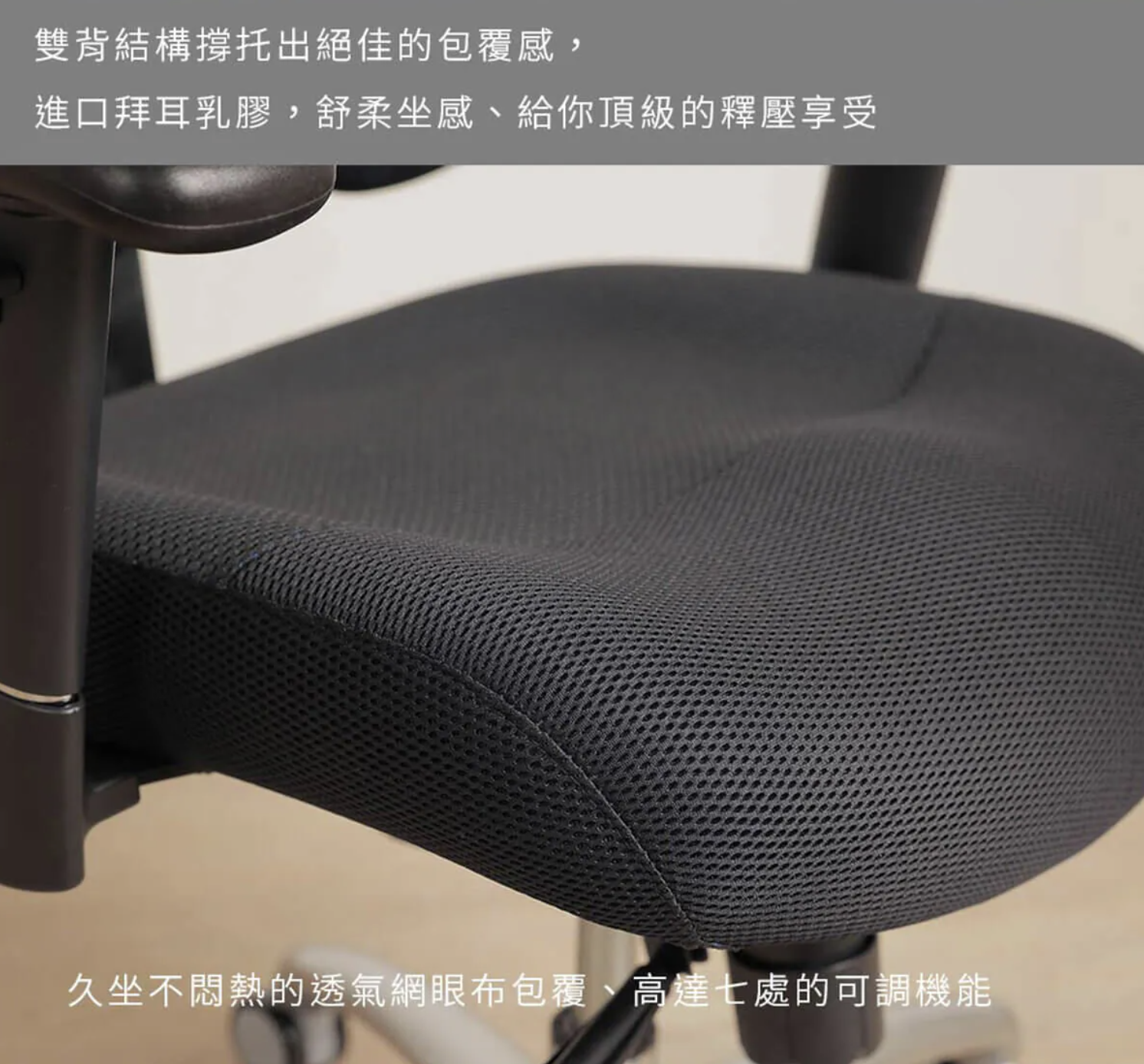 •全椅墊使用透氣網眼布包覆,透氣散熱快