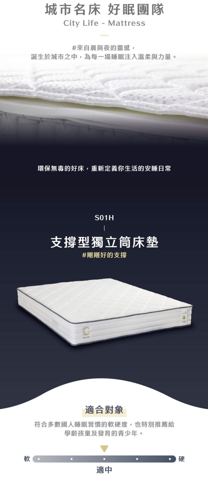 • 貼合全齡需求,守護成長發育黃金期:研發出最符合國人睡眠習慣的軟硬度,特別推薦給學齡孩童及發育中的青少年,守護脊椎健康成長。