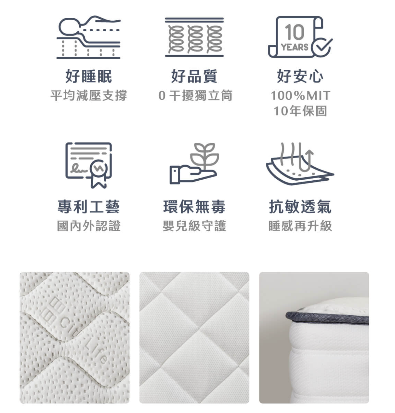 • 品質承諾: 提供中鋼獨立筒彈簧 10 年保固,給您最長久的安心支撐。