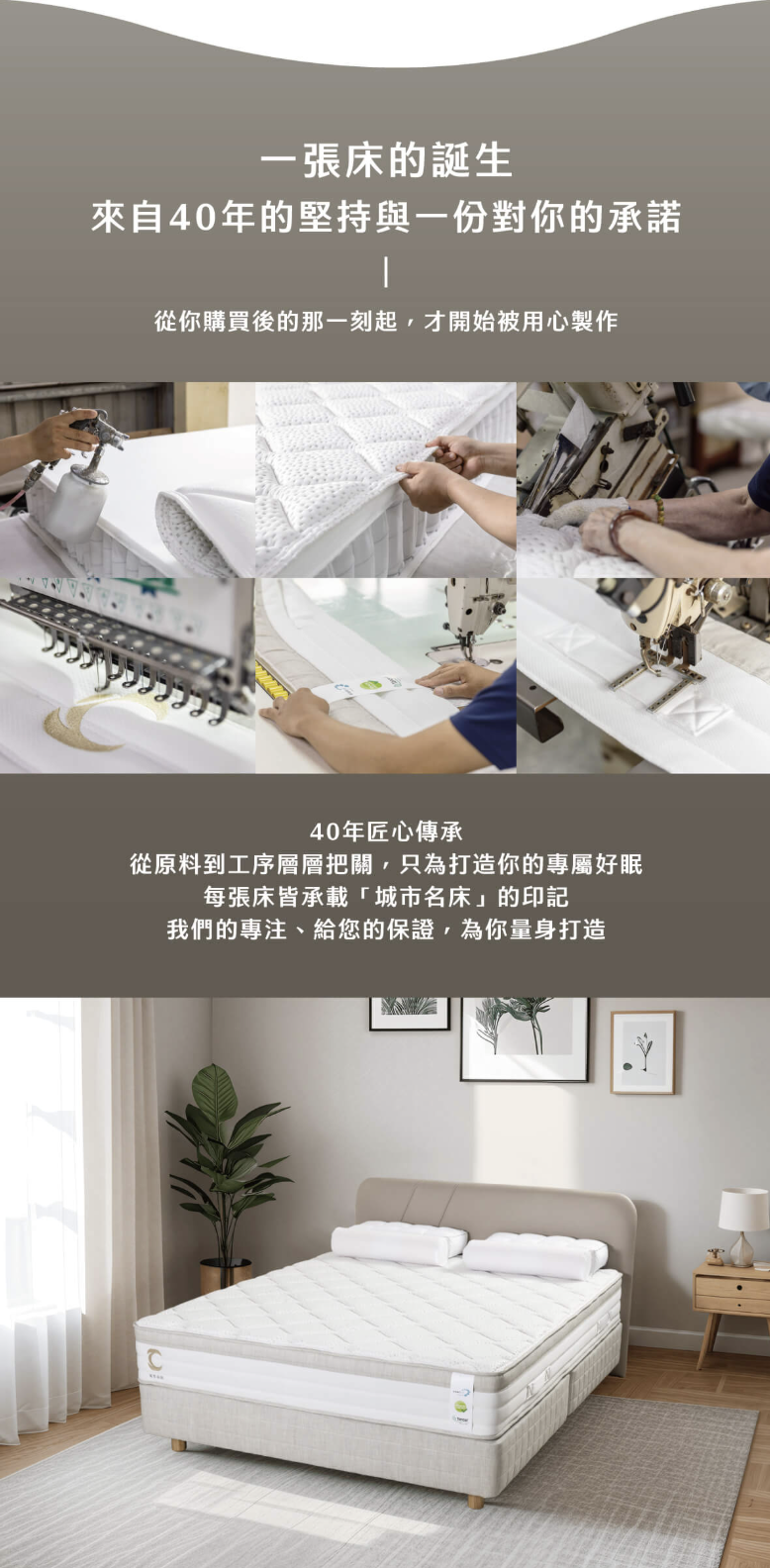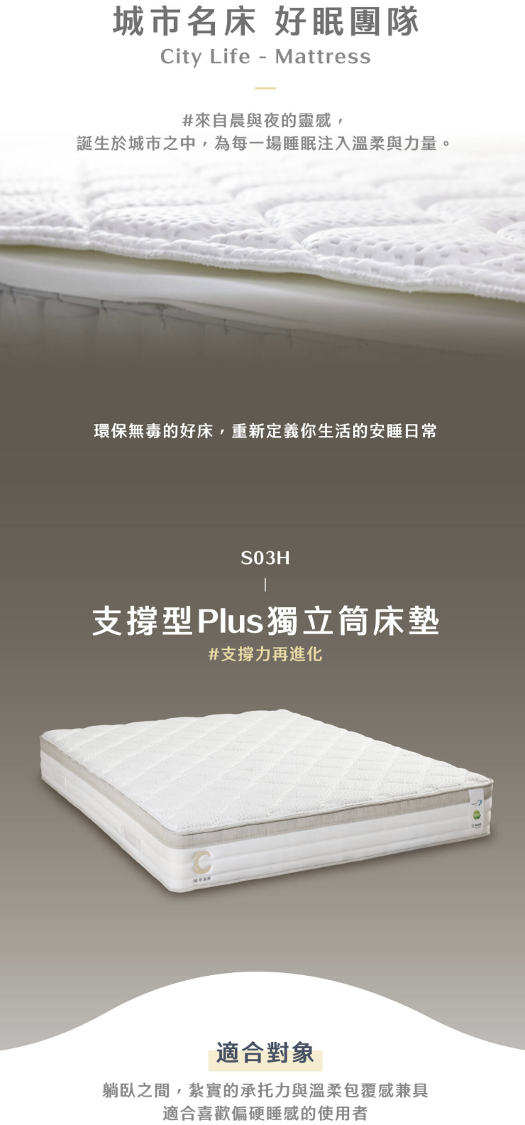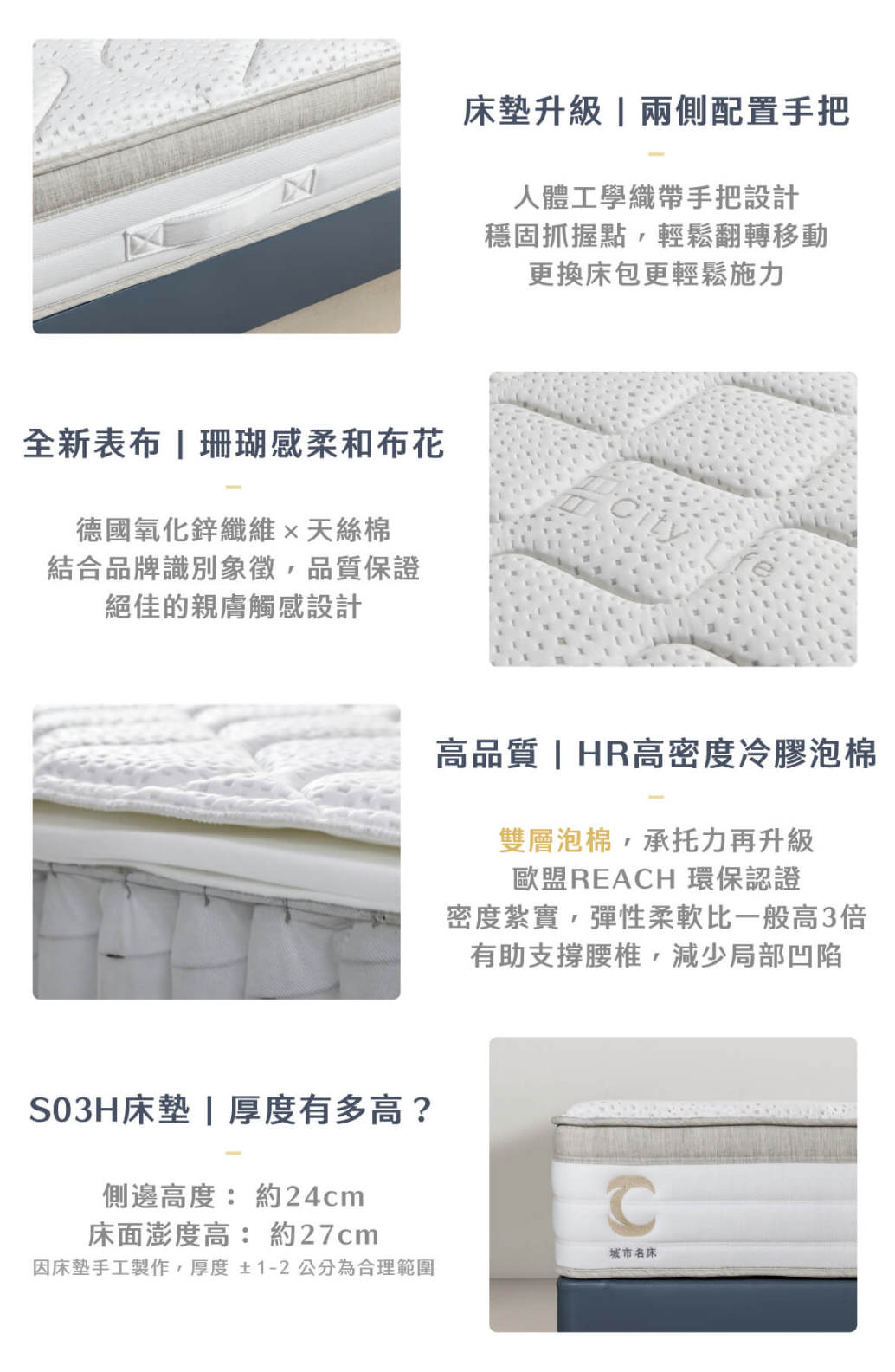 •承托力再升級,溫柔分散全身壓力:躺臥之間紮實的承托力與溫柔包覆感兼具,讓睡眠更深更舒適,適合喜歡偏硬睡感的使用者。