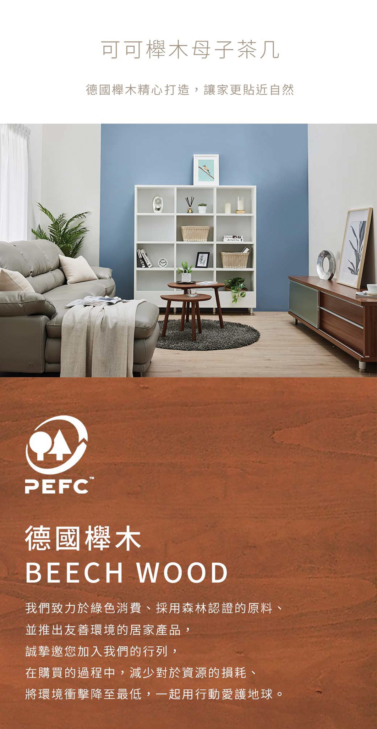 櫸木系列子母茶几-可可
